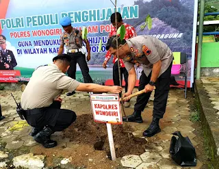 Dengan mengusung tema 'Polri Peduli Penghijauan', seluruh jajaran kepolisian di seluruh wilayah Indonesia diharapkan berperan serta dalam upaya perbaikan kembali lingkungan, dengan penanaman pohon. Dan hal itu langsung ditindak lanjuti oleh Polres Wonogiri, dengan melakukan penanaman ribuan bibit tanaman di kawasan Waduk Gajah Mungkur, pada Rabu (8/1) pagi.